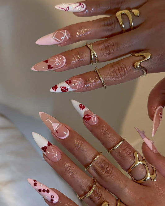 Romantic Coquette Lips & Bows Press On Nails - Long Almond