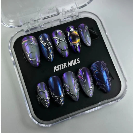 Aster Nails - a US-based brand inspired by the Y2K revival and chrome-core aesthetic approached Nail Handy with a clear vision — to create a custom line of handmade press-on nails that reflected their identity.